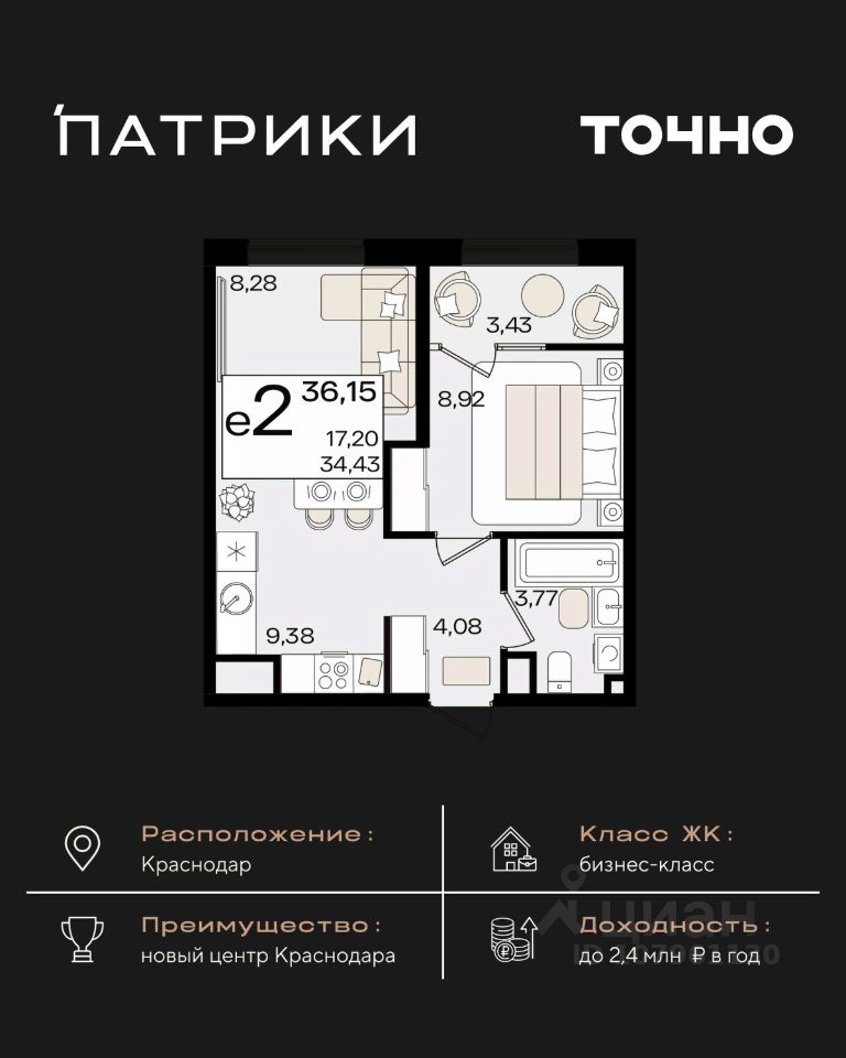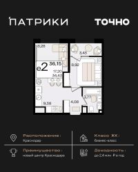 Флагманский проект группы компаний Точно - жилой комплекс бизнес-класса Патрики, это 10 домов разной этажности расположившихся на 28,5 гектарах. Жилой комплекс с концепцией город в город - прогулочные аллеи, парковая территория, 3 детских сада, 2 школы - одна из которых частная, Гранд аллея с ресторанами, фонтанами и модными бутиками, уникальные мафы и ландшафтный дизайн, создают особую атмосферу - место в котором хочется находиться. В Патриках предусмотрен и креативный кластер Цех, который включает в себя пространство для коворкинга, фудкорт, бутики, детский комплекс, лектории, фитнес-клуб Баланс с волной для сёрфа. Но и это еще не все ГК Точно уважает историю, поэтому мы сохранили 2 башни - наследство от завода "Сельмаш" исторический арт-объект назвали Мастер и Маргарита.