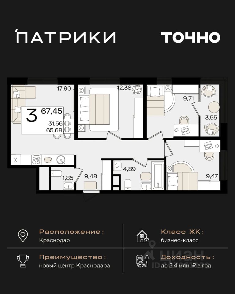 Общая площадь65,68 м²