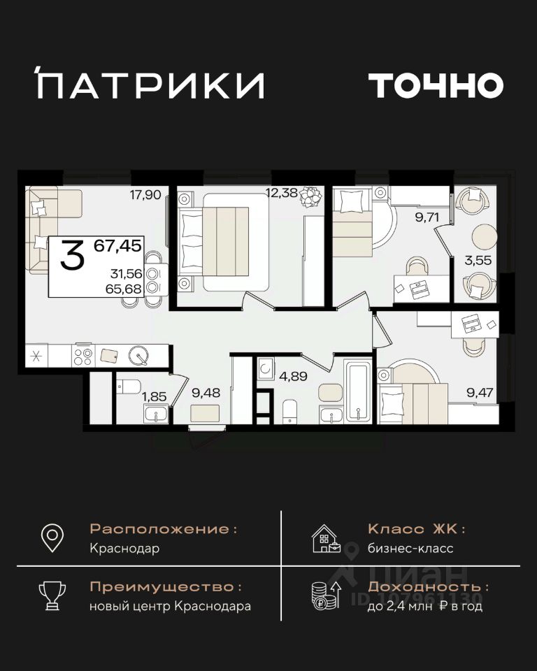Флагманский проект группы компаний Точно - жилой комплекс бизнес-класса Патрики, это 10 домов разной этажности расположившихся на 28,5 гектарах. Жилой комплекс с концепцией город в город - прогулочные аллеи, парковая территория, 3 детских сада, 2 школы - одна из которых частная, Гранд аллея с ресторанами, фонтанами и модными бутиками, уникальные мафы и ландшафтный дизайн, создают особую атмосферу - место в котором хочется находиться. В Патриках предусмотрен и креативный кластер Цех, который включает в себя пространство для коворкинга, фудкорт, бутики, детский комплекс, лектории, фитнес-клуб Баланс с волной для сёрфа. Но и это еще не все ГК Точно уважает историю, поэтому мы сохранили 2 башни - наследство от завода "Сельмаш" исторический арт-объект назвали Мастер и Маргарита.