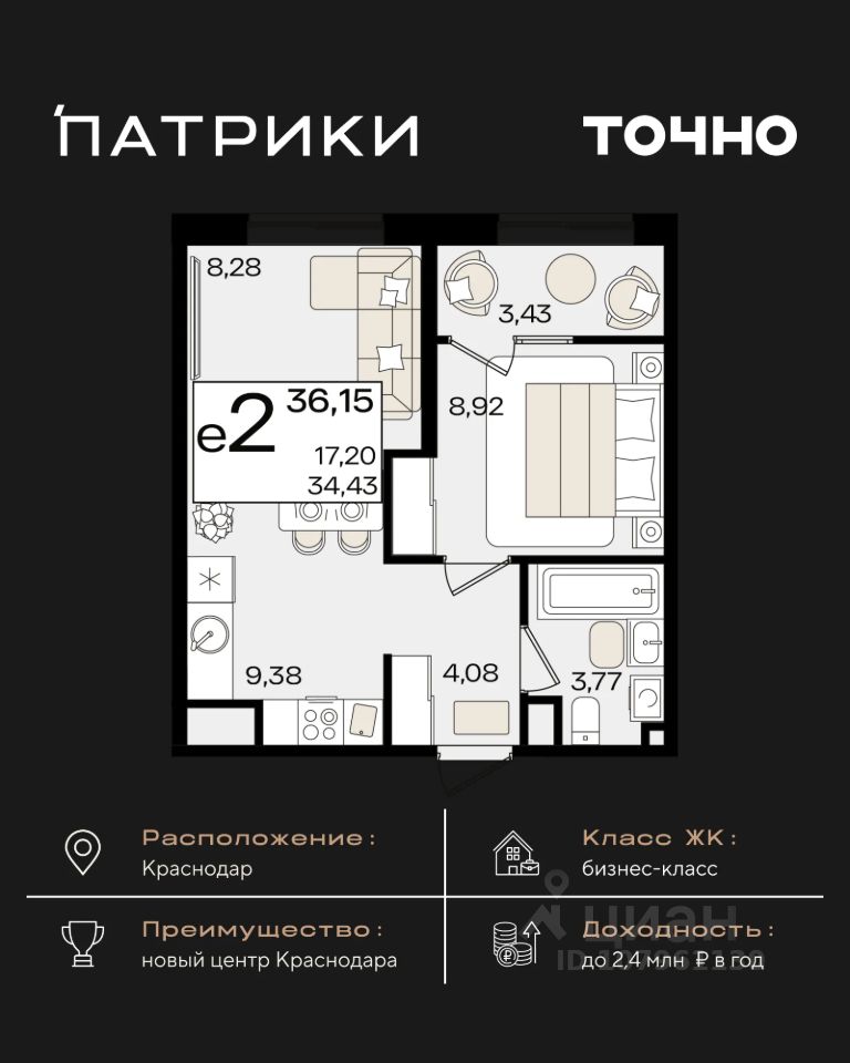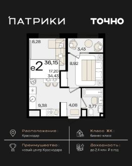Флагманский проект группы компаний Точно - жилой комплекс бизнес-класса Патрики, это 10 домов разной этажности расположившихся на 28,5 гектарах. Жилой комплекс с концепцией город в город - прогулочные аллеи, парковая территория, 3 детских сада, 2 школы - одна из которых частная, Гранд аллея с ресторанами, фонтанами и модными бутиками, уникальные мафы и ландшафтный дизайн, создают особую атмосферу - место в котором хочется находиться. В Патриках предусмотрен и креативный кластер Цех, который включает в себя пространство для коворкинга, фудкорт, бутики, детский комплекс, лектории, фитнес-клуб Баланс с волной для сёрфа. Но и это еще не все ГК Точно уважает историю, поэтому мы сохранили 2 башни - наследство от завода "Сельмаш" исторический арт-объект назвали Мастер и Маргарита.