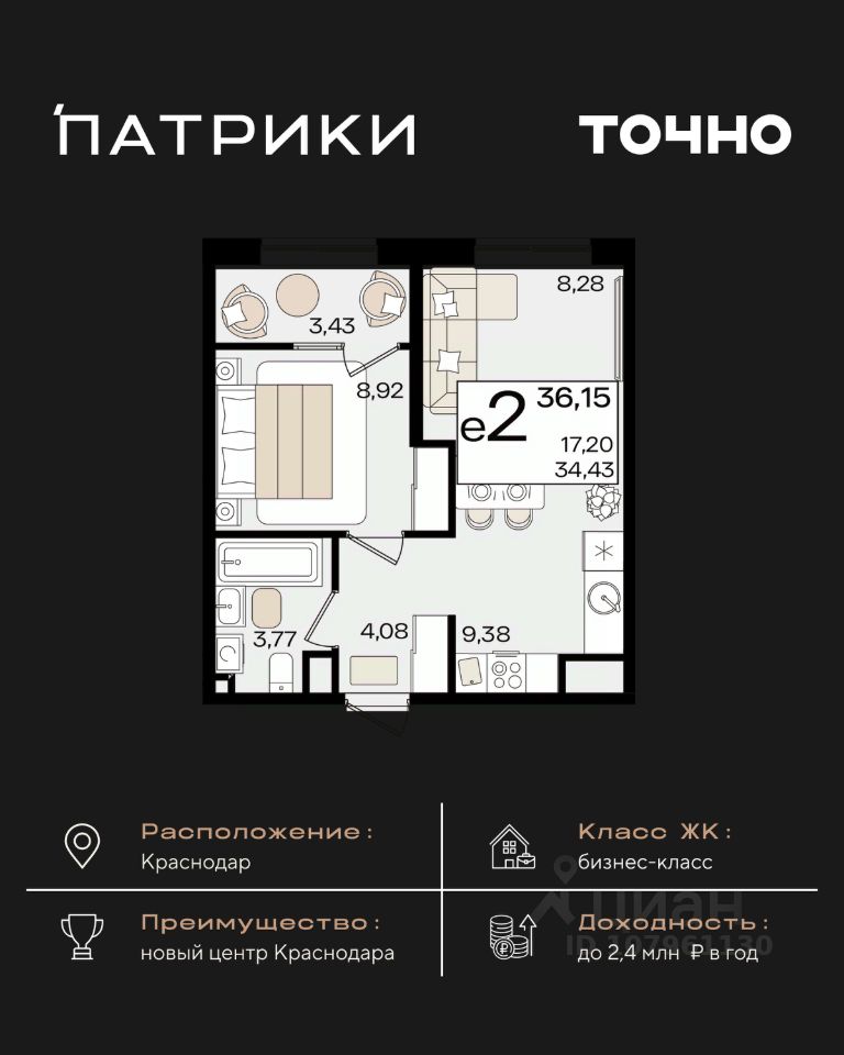 Флагманский проект группы компаний Точно - жилой комплекс бизнес-класса Патрики, это 10 домов разной этажности расположившихся на 28,5 гектарах. Жилой комплекс с концепцией город в город - прогулочные аллеи, парковая территория, 3 детских сада, 2 школы - одна из которых частная, Гранд аллея с ресторанами, фонтанами и модными бутиками, уникальные мафы и ландшафтный дизайн, создают особую атмосферу - место в котором хочется находиться. В Патриках предусмотрен и креативный кластер Цех, который включает в себя пространство для коворкинга, фудкорт, бутики, детский комплекс, лектории, фитнес-клуб Баланс с волной для сёрфа. Но и это еще не все ГК Точно уважает историю, поэтому мы сохранили 2 башни - наследство от завода "Сельмаш" исторический арт-объект назвали Мастер и Маргарита.