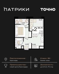 Общая площадь36,15 м²
