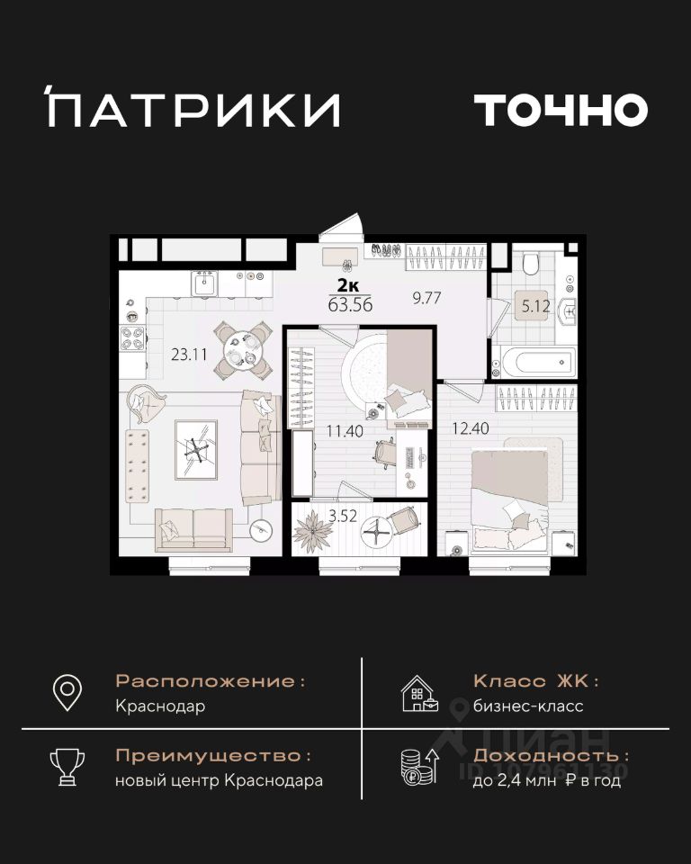 Флагманский проект группы компаний Точно - жилой комплекс бизнес-класса Патрики, это 10 домов разной этажности расположившихся на 28,5 гектарах. Жилой комплекс с концепцией город в город - прогулочные аллеи, парковая территория, 3 детских сада, 2 школы - одна из которых частная, Гранд аллея с ресторанами, фонтанами и модными бутиками, уникальные мафы и ландшафтный дизайн, создают особую атмосферу - место в котором хочется находиться. В Патриках предусмотрен и креативный кластер Цех, который включает в себя пространство для коворкинга, фудкорт, бутики, детский комплекс, лектории, фитнес-клуб Баланс с волной для сёрфа. Но и это еще не все ГК Точно уважает историю, поэтому мы сохранили 2 башни - наследство от завода "Сельмаш" исторический арт-объект назвали Мастер и Маргарита.
