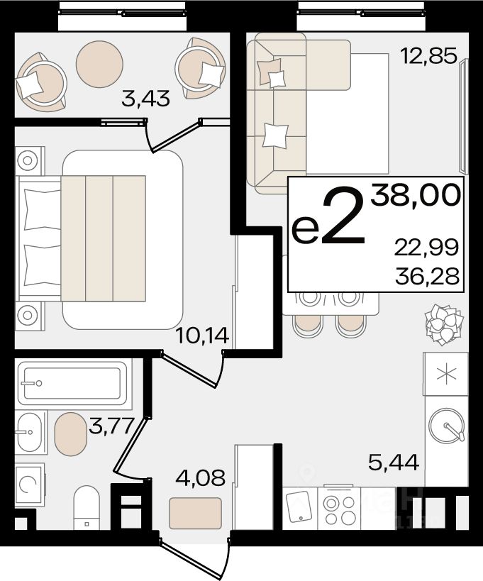 Общая площадь38 м²