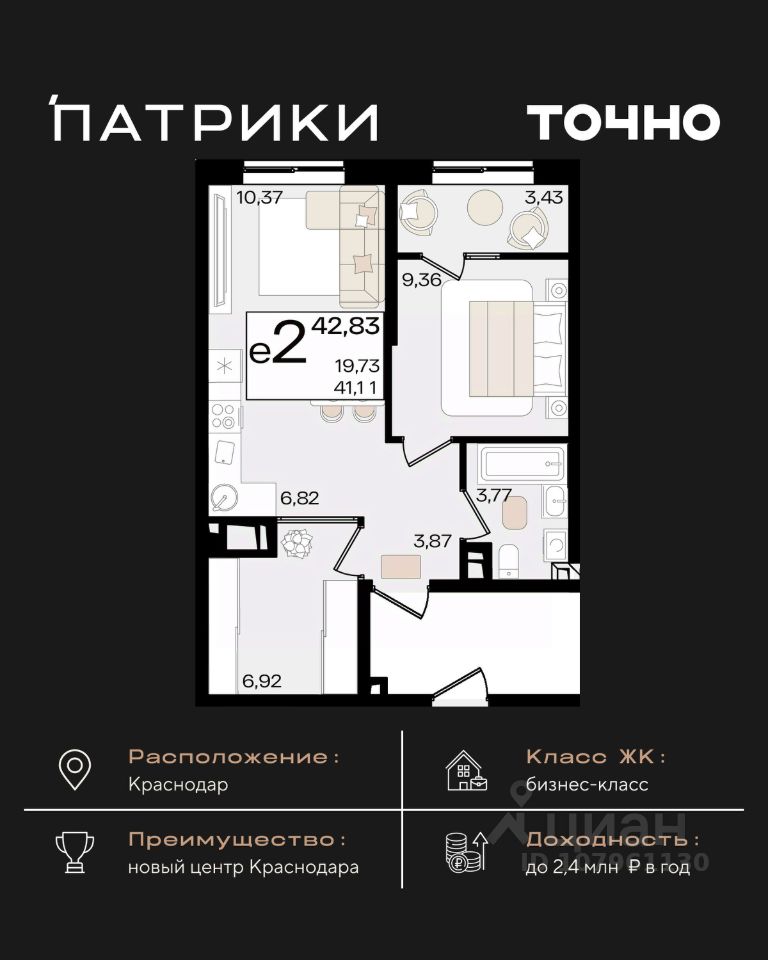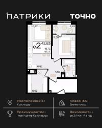 Общая площадь42,83 м²