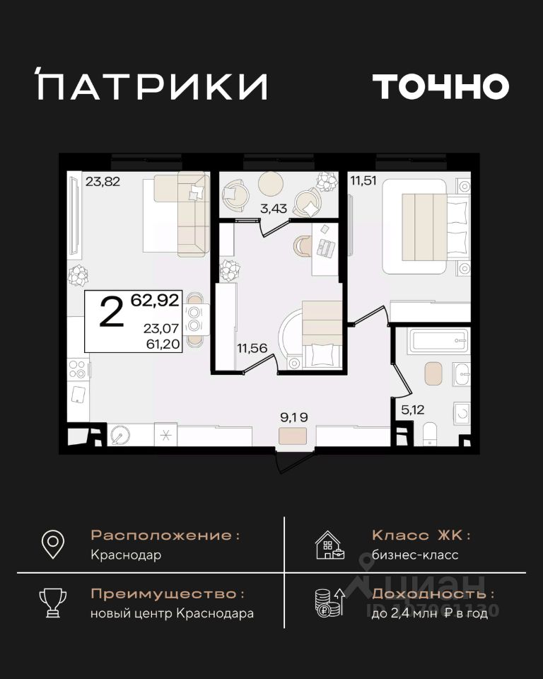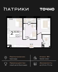 Флагманский проект группы компаний Точно - жилой комплекс бизнес-класса Патрики, это 10 домов разной этажности расположившихся на 28,5 гектарах. Жилой комплекс с концепцией город в город - прогулочные аллеи, парковая территория, 3 детских сада, 2 школы - одна из которых частная, Гранд аллея с ресторанами, фонтанами и модными бутиками, уникальные мафы и ландшафтный дизайн, создают особую атмосферу - место в котором хочется находиться. В Патриках предусмотрен и креативный кластер Цех, который включает в себя пространство для коворкинга, фудкорт, бутики, детский комплекс, лектории, фитнес-клуб Баланс с волной для сёрфа. Но и это еще не все ГК Точно уважает историю, поэтому мы сохранили 2 башни - наследство от завода "Сельмаш" исторический арт-объект назвали Мастер и Маргарита.