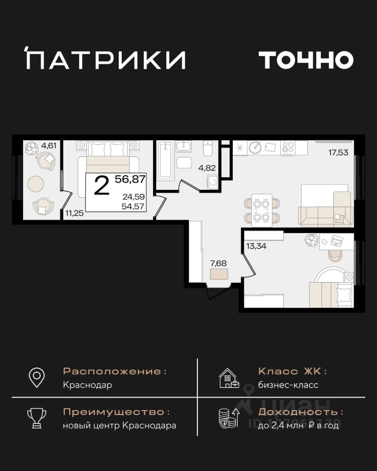 Микрорайон "Патрики" — это проект не только для жизни и отдыха, но и для выгодных вложений. Выбирайте "Патрики" и получайте доход от инвестиций до 2,4 млн рублей в год.*