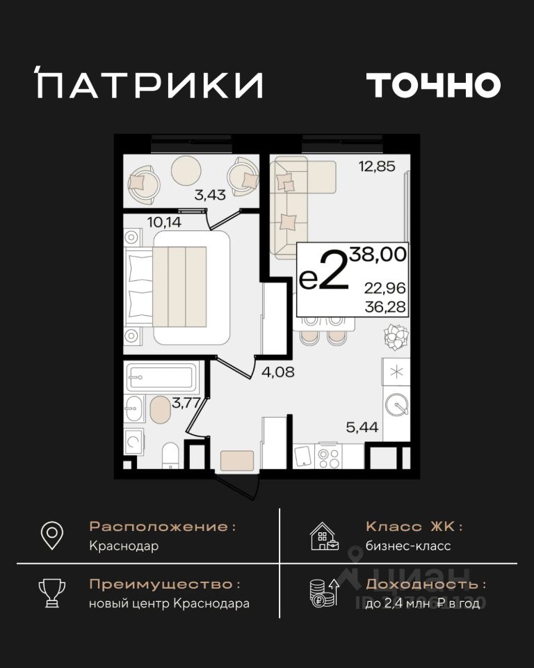Продаётся 2-комнатная квартира в строящемся доме (Литер 1.3), срок сдачи: IV-кв. 2025, общей площадью 36.28 кв.м., на 2 этаже. Флагманский проект группы компаний Точно - жилой комплекс бизнес-класса Патрики, это 10 домов разной этажности расположившихся на 28,5 гектарах. Жилой комплекс с концепцией город в город - прогулочные аллеи, парковая территория, 3 детских сада, 2 школы - одна из которых частная, Гранд аллея с ресторанами, фонтанами и модными бутиками, уникальные мафы и ландшафтный дизайн, создают особую атмосферу - место в котором хочется находиться. В Патриках предусмотрен и креативный кластер Цех, который включает в себя пространство для коворкинга, фудкорт, бутики, детский комплекс, лектории, фитнес-клуб Баланс с волной для сёрфа. Но и это еще не все ГК Точно уважает историю, поэтому мы сохранили 2 башни - наследство от завода "Сельмаш" исторический арт-объект назвали Мастер и Маргарита.