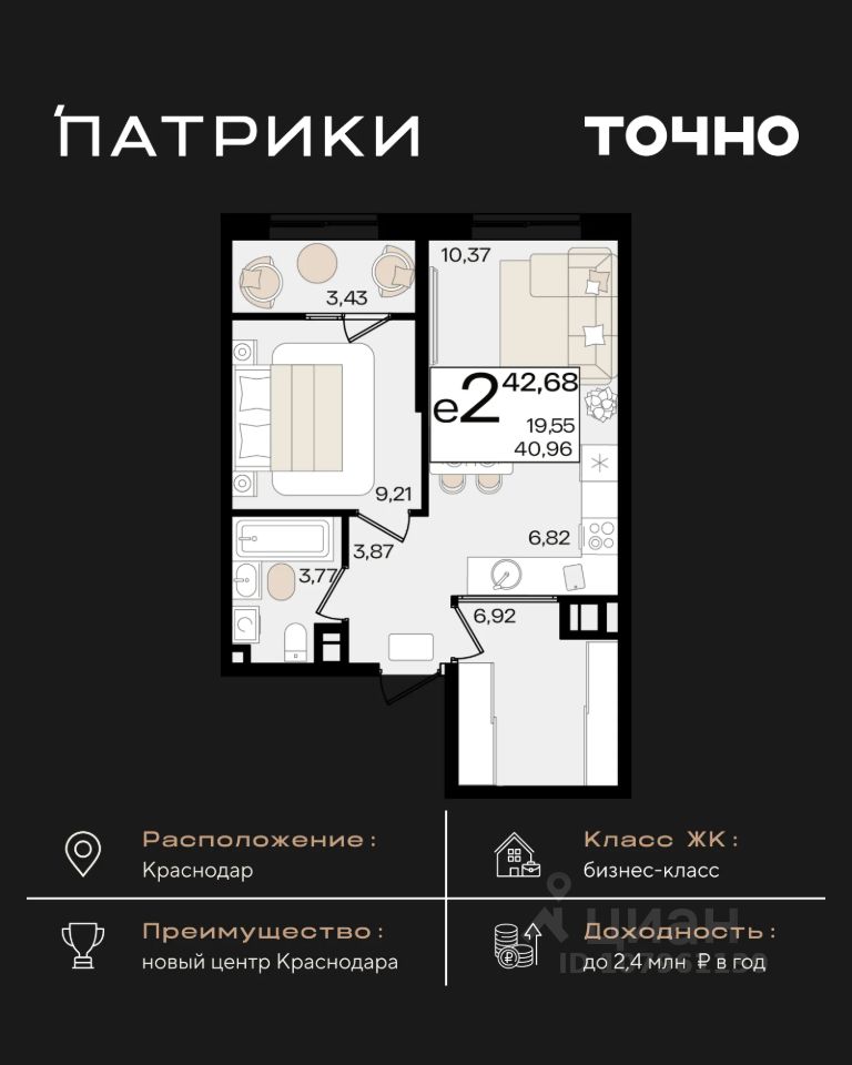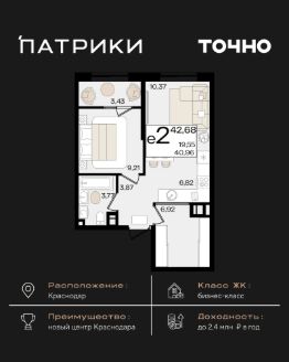 Продаётся 2-комнатная квартира в строящемся доме (Литер 1.3), срок сдачи: IV-кв. 2025, общей площадью 40.96 кв.м., на 9 этаже. Флагманский проект группы компаний Точно - жилой комплекс бизнес-класса Патрики, это 10 домов разной этажности расположившихся на 28,5 гектарах. Жилой комплекс с концепцией город в город - прогулочные аллеи, парковая территория, 3 детских сада, 2 школы - одна из которых частная, Гранд аллея с ресторанами, фонтанами и модными бутиками, уникальные мафы и ландшафтный дизайн, создают особую атмосферу - место в котором хочется находиться. В Патриках предусмотрен и креативный кластер Цех, который включает в себя пространство для коворкинга, фудкорт, бутики, детский комплекс, лектории, фитнес-клуб Баланс с волной для сёрфа. Но и это еще не все ГК Точно уважает историю, поэтому мы сохранили 2 башни - наследство от завода "Сельмаш" исторический арт-объект назвали Мастер и Маргарита.