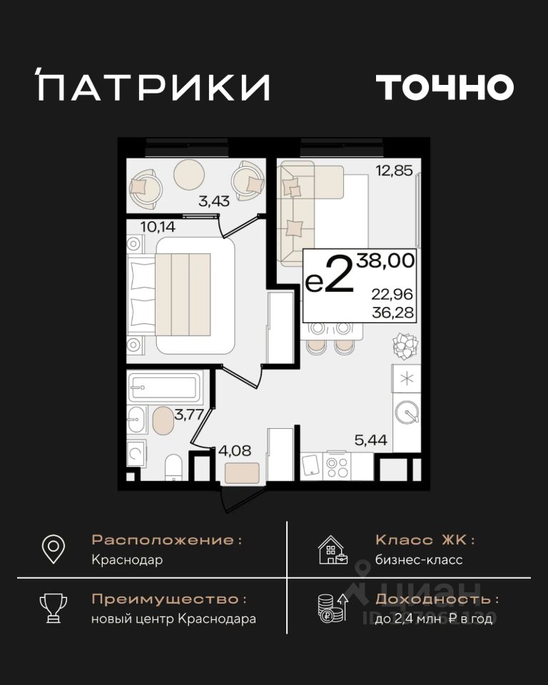 Продаётся 2-комнатная квартира в строящемся доме (Литер 1.3), срок сдачи: IV-кв. 2025, общей площадью 36.28 кв.м., на 15 этаже. Флагманский проект группы компаний Точно - жилой комплекс бизнес-класса Патрики, это 10 домов разной этажности расположившихся на 28,5 гектарах. Жилой комплекс с концепцией город в город - прогулочные аллеи, парковая территория, 3 детских сада, 2 школы - одна из которых частная, Гранд аллея с ресторанами, фонтанами и модными бутиками, уникальные мафы и ландшафтный дизайн, создают особую атмосферу - место в котором хочется находиться. В Патриках предусмотрен и креативный кластер Цех, который включает в себя пространство для коворкинга, фудкорт, бутики, детский комплекс, лектории, фитнес-клуб Баланс с волной для сёрфа. Но и это еще не все ГК Точно уважает историю, поэтому мы сохранили 2 башни - наследство от завода "Сельмаш" исторический арт-объект назвали Мастер и Маргарита.
