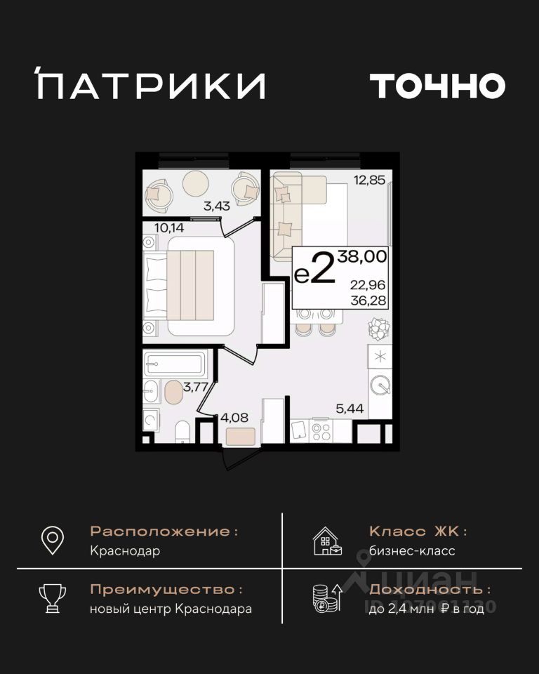 Флагманский проект группы компаний Точно - жилой комплекс бизнес-класса Патрики, это 10 домов разной этажности расположившихся на 28,5 гектарах. Жилой комплекс с концепцией город в город - прогулочные аллеи, парковая территория, 3 детских сада, 2 школы - одна из которых частная, Гранд аллея с ресторанами, фонтанами и модными бутиками, уникальные мафы и ландшафтный дизайн, создают особую атмосферу - место в котором хочется находиться. В Патриках предусмотрен и креативный кластер Цех, который включает в себя пространство для коворкинга, фудкорт, бутики, детский комплекс, лектории, фитнес-клуб Баланс с волной для сёрфа. Но и это еще не все ГК Точно уважает историю, поэтому мы сохранили 2 башни - наследство от завода "Сельмаш" исторический арт-объект назвали Мастер и Маргарита.