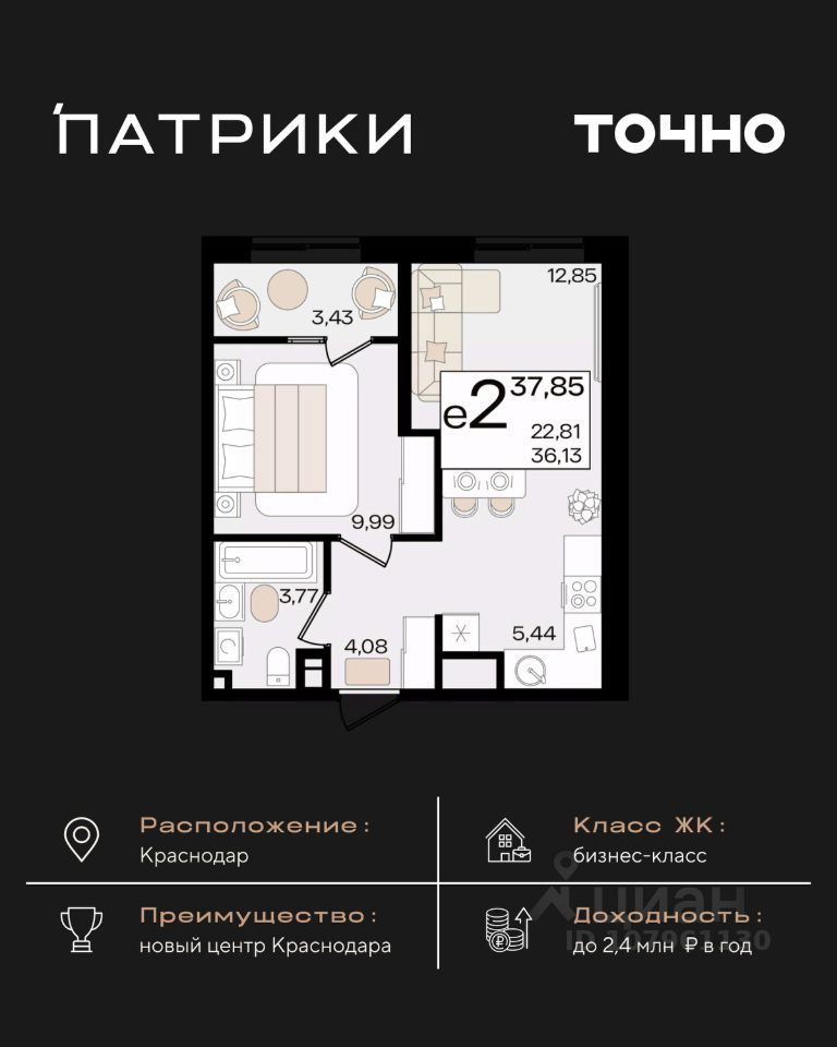 Флагманский проект группы компаний Точно - жилой комплекс бизнес-класса Патрики, это 10 домов разной этажности расположившихся на 28,5 гектарах. Жилой комплекс с концепцией город в город - прогулочные аллеи, парковая территория, 3 детских сада, 2 школы - одна из которых частная, Гранд аллея с ресторанами, фонтанами и модными бутиками, уникальные мафы и ландшафтный дизайн, создают особую атмосферу - место в котором хочется находиться. В Патриках предусмотрен и креативный кластер Цех, который включает в себя пространство для коворкинга, фудкорт, бутики, детский комплекс, лектории, фитнес-клуб Баланс с волной для сёрфа. Но и это еще не все ГК Точно уважает историю, поэтому мы сохранили 2 башни - наследство от завода "Сельмаш" исторический арт-объект назвали Мастер и Маргарита.