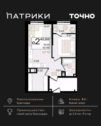 Общая площадь42,68 м²