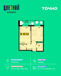 Общая площадь45,54 м²