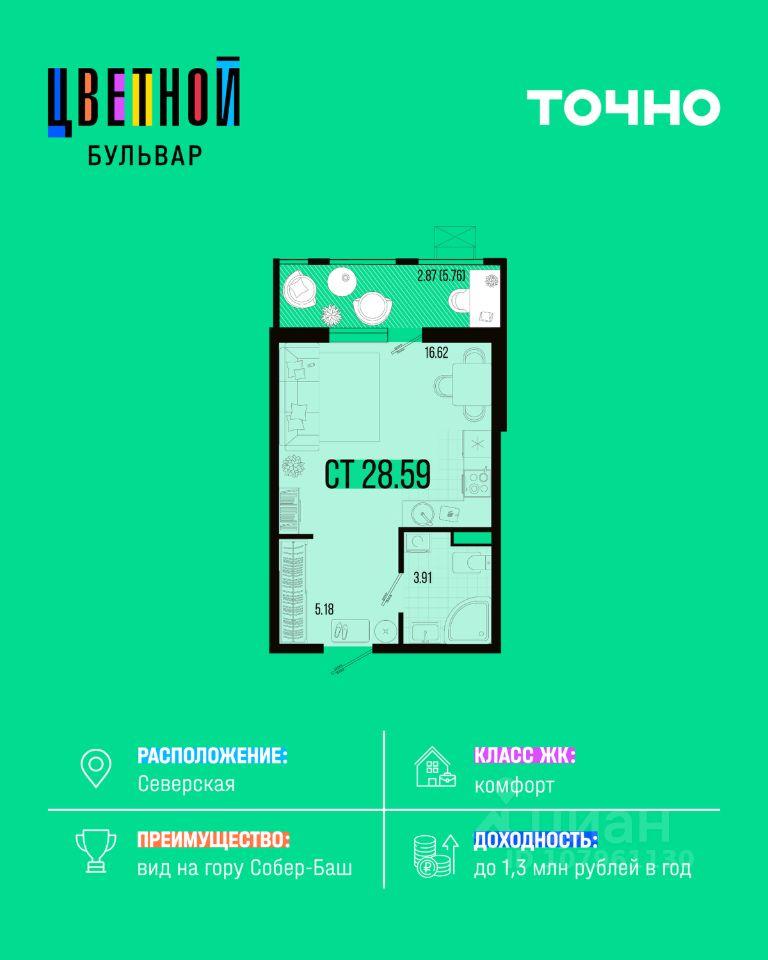 Жилой комплекс "Цветной бульвар" — это уютные дома высотой от 5 до 8 этажей, где каждый найдет квартиру своей мечты: от стильных студий до роскошных двухуровневых квартир с потрясающим видом на гору Собер-Баш! Представьте себе жизнь среди живописной природы, наслаждаясь прогулками по широкому зеленому бульвару длиной 460 метров, окруженному красивыми зелеными насаждениями и зонами для занятий спортом и отдыха всей семьей. Для детей современный детский сад и школа, где специально созданный музей и уникальная STEAM-лаборатория откроют перед ними удивительный мир науки и творчества!