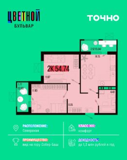 "ЖК "Цветной бульвар" — расположен в живописной станице Северская Краснодарского края и занимает территорию более 24 гектаров. Это семь кварталов комфортной среднеэтажной застройки (58 этажей), где каждый найдёт идеальную квартиру: от уютных студий до просторных двухуровневых апартаментов с террасами и видом на гору Собер-Баш. Главное пространство комплекса — зеленый бульвар длиной 460 метров с прогулочными аллеями, фонтаном, зонами отдыха и спортивными площадками. Здесь приятно гулять всей семьёй и проводить время на свежем воздухе. На территории предусмотрены современные детские площадки с безопасным покрытием, воркаут-зоны, трёхуровневое ландшафтное озеленение с газонами и кустарниками, уютные дворы без машин, более 5 000 м² коммерческой инфраструктуры, а также детский сад на 350 мест и новая школа с музеем и STEAM-лабораторией. "Цветной бульвар" — это новый уровень комфорта, где природа и современная архитектура создают пространство для счастливой жизни."