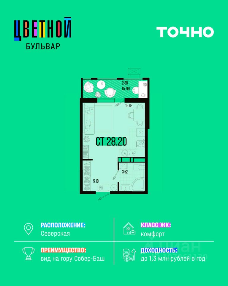 Жилой комплекс "Цветной бульвар" — это уютные дома высотой от 5 до 8 этажей, где каждый найдет квартиру своей мечты: от стильных студий до роскошных двухуровневых квартир с потрясающим видом на гору Собер-Баш! Представьте себе жизнь среди живописной природы, наслаждаясь прогулками по широкому зеленому бульвару длиной 460 метров, окруженному красивыми зелеными насаждениями и зонами для занятий спортом и отдыха всей семьей. Для детей современный детский сад и школа, где специально созданный музей и уникальная STEAM-лаборатория откроют перед ними удивительный мир науки и творчества!