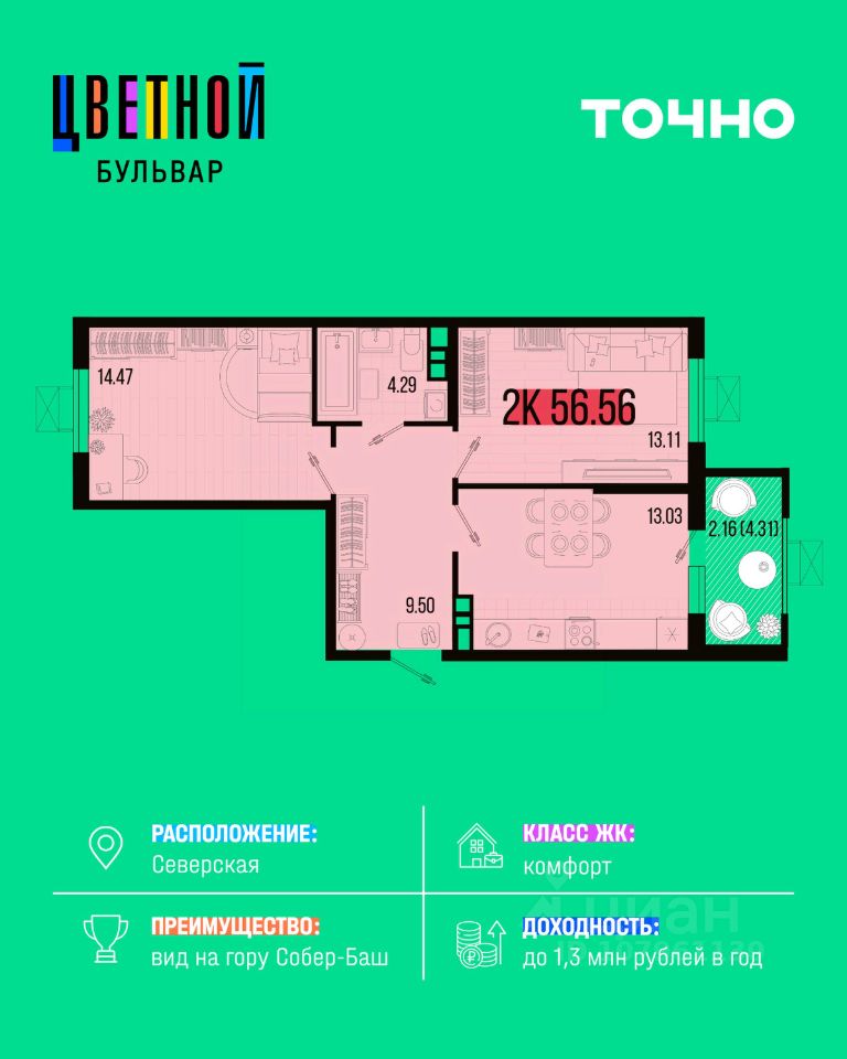 Жилой комплекс "Цветной бульвар" — это уютные дома высотой от 5 до 8 этажей, где каждый найдет квартиру своей мечты: от стильных студий до роскошных двухуровневых квартир с потрясающим видом на гору Собер-Баш! Представьте себе жизнь среди живописной природы, наслаждаясь прогулками по широкому зеленому бульвару длиной 460 метров, окруженному красивыми зелеными насаждениями и зонами для занятий спортом и отдыха всей семьей. Для детей современный детский сад и школа, где специально созданный музей и уникальная STEAM-лаборатория откроют перед ними удивительный мир науки и творчества!