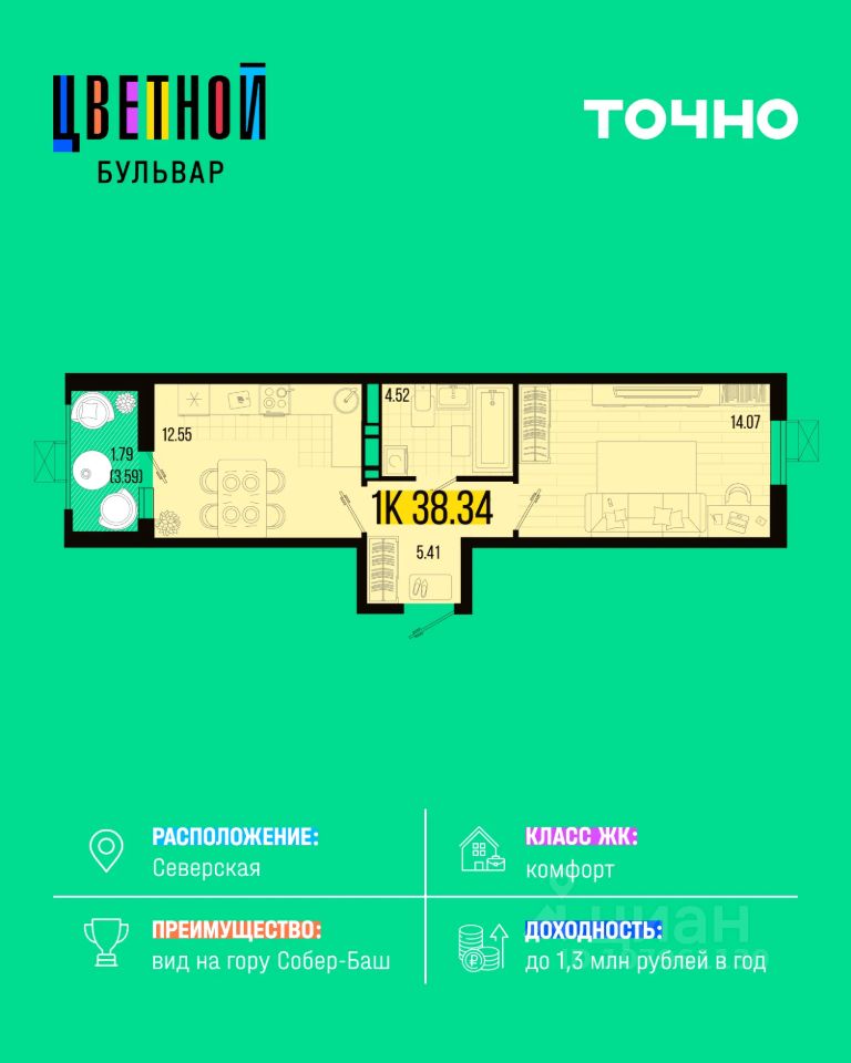 "ЖК "Цветной бульвар" — расположен в живописной станице Северская Краснодарского края и занимает территорию более 24 гектаров. Это семь кварталов комфортной среднеэтажной застройки (58 этажей), где каждый найдёт идеальную квартиру: от уютных студий до просторных двухуровневых апартаментов с террасами и видом на гору Собер-Баш. Главное пространство комплекса — зеленый бульвар длиной 460 метров с прогулочными аллеями, фонтаном, зонами отдыха и спортивными площадками. Здесь приятно гулять всей семьёй и проводить время на свежем воздухе. На территории предусмотрены современные детские площадки с безопасным покрытием, воркаут-зоны, трёхуровневое ландшафтное озеленение с газонами и кустарниками, уютные дворы без машин, более 5 000 м² коммерческой инфраструктуры, а также детский сад на 350 мест и новая школа с музеем и STEAM-лабораторией. "Цветной бульвар" — это новый уровень комфорта, где природа и современная архитектура создают пространство для счастливой жизни."
