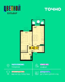 "ЖК "Цветной бульвар" — расположен в живописной станице Северская Краснодарского края и занимает территорию более 24 гектаров. Это семь кварталов комфортной среднеэтажной застройки (58 этажей), где каждый найдёт идеальную квартиру: от уютных студий до просторных двухуровневых апартаментов с террасами и видом на гору Собер-Баш. Главное пространство комплекса — зеленый бульвар длиной 460 метров с прогулочными аллеями, фонтаном, зонами отдыха и спортивными площадками. Здесь приятно гулять всей семьёй и проводить время на свежем воздухе. На территории предусмотрены современные детские площадки с безопасным покрытием, воркаут-зоны, трёхуровневое ландшафтное озеленение с газонами и кустарниками, уютные дворы без машин, более 5 000 м² коммерческой инфраструктуры, а также детский сад на 350 мест и новая школа с музеем и STEAM-лабораторией. "Цветной бульвар" — это новый уровень комфорта, где природа и современная архитектура создают пространство для счастливой жизни."