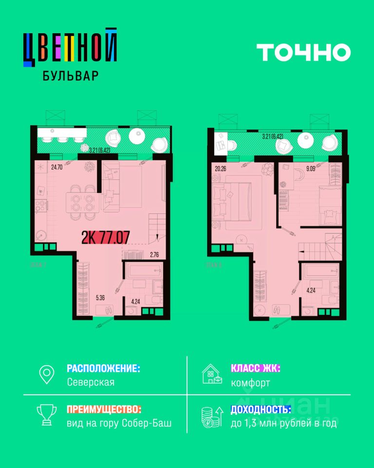 Жилой комплекс "Цветной бульвар" — это уютные дома высотой от 5 до 8 этажей, где каждый найдет квартиру своей мечты: от стильных студий до роскошных двухуровневых квартир с потрясающим видом на гору Собер-Баш! Представьте себе жизнь среди живописной природы, наслаждаясь прогулками по широкому зеленому бульвару длиной 460 метров, окруженному красивыми зелеными насаждениями и зонами для занятий спортом и отдыха всей семьей. Для детей современный детский сад и школа, где специально созданный музей и уникальная STEAM-лаборатория откроют перед ними удивительный мир науки и творчества!
