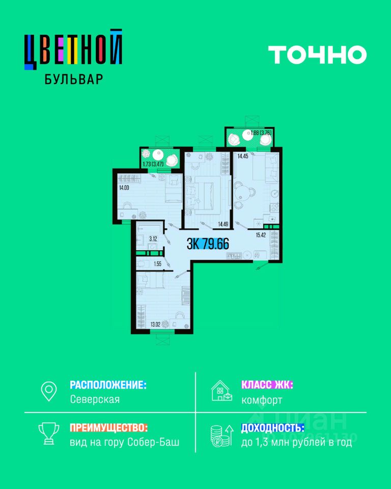 Жилой комплекс "Цветной бульвар" — это уютные дома высотой от 5 до 8 этажей, где каждый найдет квартиру своей мечты: от стильных студий до роскошных двухуровневых квартир с потрясающим видом на гору Собер-Баш! Представьте себе жизнь среди живописной природы, наслаждаясь прогулками по широкому зеленому бульвару длиной 460 метров, окруженному красивыми зелеными насаждениями и зонами для занятий спортом и отдыха всей семьей. Для детей современный детский сад и школа, где специально созданный музей и уникальная STEAM-лаборатория откроют перед ними удивительный мир науки и творчества!