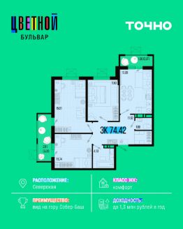 "ЖК "Цветной бульвар" — расположен в живописной станице Северская Краснодарского края и занимает территорию более 24 гектаров. Это семь кварталов комфортной среднеэтажной застройки (58 этажей), где каждый найдёт идеальную квартиру: от уютных студий до просторных двухуровневых апартаментов с террасами и видом на гору Собер-Баш. Главное пространство комплекса — зеленый бульвар длиной 460 метров с прогулочными аллеями, фонтаном, зонами отдыха и спортивными площадками. Здесь приятно гулять всей семьёй и проводить время на свежем воздухе. На территории предусмотрены современные детские площадки с безопасным покрытием, воркаут-зоны, трёхуровневое ландшафтное озеленение с газонами и кустарниками, уютные дворы без машин, более 5 000 м² коммерческой инфраструктуры, а также детский сад на 350 мест и новая школа с музеем и STEAM-лабораторией. "Цветной бульвар" — это новый уровень комфорта, где природа и современная архитектура создают пространство для счастливой жизни."