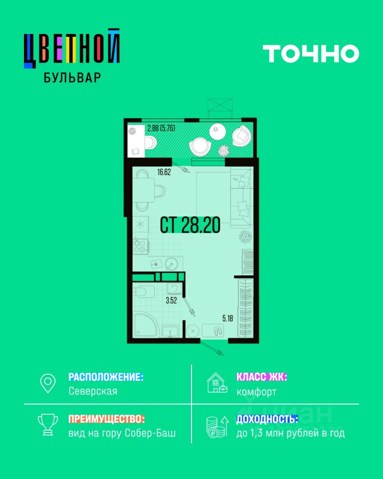 "ЖК "Цветной бульвар" — расположен в живописной станице Северская Краснодарского края и занимает территорию более 24 гектаров. Это семь кварталов комфортной среднеэтажной застройки (58 этажей), где каждый найдёт идеальную квартиру: от уютных студий до просторных двухуровневых апартаментов с террасами и видом на гору Собер-Баш. Главное пространство комплекса — зеленый бульвар длиной 460 метров с прогулочными аллеями, фонтаном, зонами отдыха и спортивными площадками. Здесь приятно гулять всей семьёй и проводить время на свежем воздухе. На территории предусмотрены современные детские площадки с безопасным покрытием, воркаут-зоны, трёхуровневое ландшафтное озеленение с газонами и кустарниками, уютные дворы без машин, более 5 000 м² коммерческой инфраструктуры, а также детский сад на 350 мест и новая школа с музеем и STEAM-лабораторией. "Цветной бульвар" — это новый уровень комфорта, где природа и современная архитектура создают пространство для счастливой жизни."