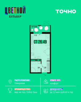 "ЖК "Цветной бульвар" — расположен в живописной станице Северская Краснодарского края и занимает территорию более 24 гектаров. Это семь кварталов комфортной среднеэтажной застройки (58 этажей), где каждый найдёт идеальную квартиру: от уютных студий до просторных двухуровневых апартаментов с террасами и видом на гору Собер-Баш. Главное пространство комплекса — зеленый бульвар длиной 460 метров с прогулочными аллеями, фонтаном, зонами отдыха и спортивными площадками. Здесь приятно гулять всей семьёй и проводить время на свежем воздухе. На территории предусмотрены современные детские площадки с безопасным покрытием, воркаут-зоны, трёхуровневое ландшафтное озеленение с газонами и кустарниками, уютные дворы без машин, более 5 000 м² коммерческой инфраструктуры, а также детский сад на 350 мест и новая школа с музеем и STEAM-лабораторией. "Цветной бульвар" — это новый уровень комфорта, где природа и современная архитектура создают пространство для счастливой жизни."