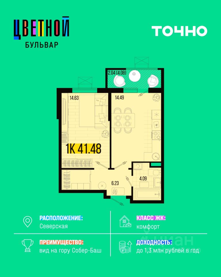 "ЖК "Цветной бульвар" — расположен в живописной станице Северская Краснодарского края и занимает территорию более 24 гектаров. Это семь кварталов комфортной среднеэтажной застройки (58 этажей), где каждый найдёт идеальную квартиру: от уютных студий до просторных двухуровневых апартаментов с террасами и видом на гору Собер-Баш. Главное пространство комплекса — зеленый бульвар длиной 460 метров с прогулочными аллеями, фонтаном, зонами отдыха и спортивными площадками. Здесь приятно гулять всей семьёй и проводить время на свежем воздухе. На территории предусмотрены современные детские площадки с безопасным покрытием, воркаут-зоны, трёхуровневое ландшафтное озеленение с газонами и кустарниками, уютные дворы без машин, более 5 000 м² коммерческой инфраструктуры, а также детский сад на 350 мест и новая школа с музеем и STEAM-лабораторией. "Цветной бульвар" — это новый уровень комфорта, где природа и современная архитектура создают пространство для счастливой жизни."