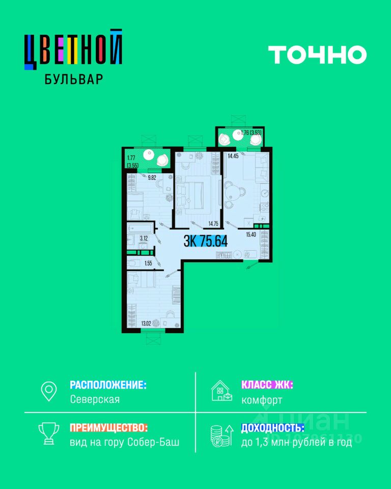 Жилой комплекс "Цветной бульвар" — это уютные дома высотой от 5 до 8 этажей, где каждый найдет квартиру своей мечты: от стильных студий до роскошных двухуровневых квартир с потрясающим видом на гору Собер-Баш! Представьте себе жизнь среди живописной природы, наслаждаясь прогулками по широкому зеленому бульвару длиной 460 метров, окруженному красивыми зелеными насаждениями и зонами для занятий спортом и отдыха всей семьей. Для детей современный детский сад и школа, где специально созданный музей и уникальная STEAM-лаборатория откроют перед ними удивительный мир науки и творчества!
