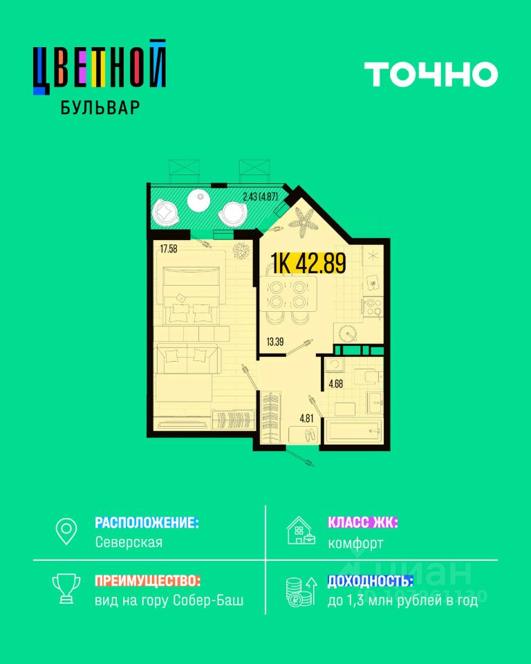 Жилой комплекс "Цветной бульвар" — это уютные дома высотой от 5 до 8 этажей, где каждый найдет квартиру своей мечты: от стильных студий до роскошных двухуровневых квартир с потрясающим видом на гору Собер-Баш! Представьте себе жизнь среди живописной природы, наслаждаясь прогулками по широкому зеленому бульвару длиной 460 метров, окруженному красивыми зелеными насаждениями и зонами для занятий спортом и отдыха всей семьей. Для детей современный детский сад и школа, где специально созданный музей и уникальная STEAM-лаборатория откроют перед ними удивительный мир науки и творчества!