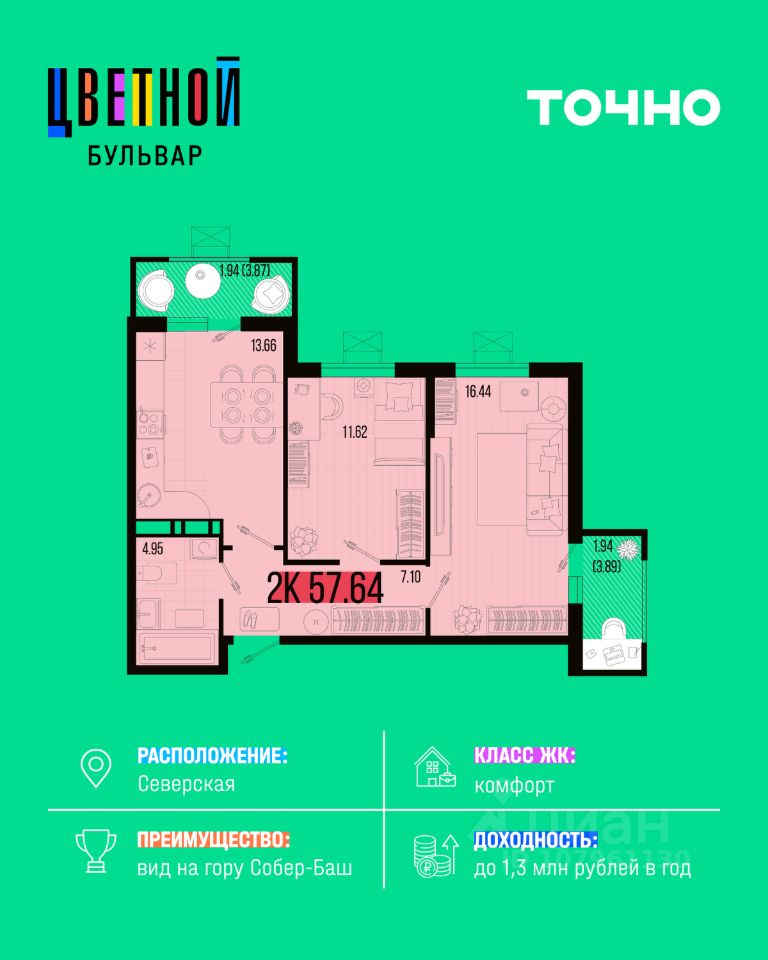 Жилой комплекс "Цветной бульвар" — это уютные дома высотой от 5 до 8 этажей, где каждый найдет квартиру своей мечты: от стильных студий до роскошных двухуровневых квартир с потрясающим видом на гору Собер-Баш! Представьте себе жизнь среди живописной природы, наслаждаясь прогулками по широкому зеленому бульвару длиной 460 метров, окруженному красивыми зелеными насаждениями и зонами для занятий спортом и отдыха всей семьей. Для детей современный детский сад и школа, где специально созданный музей и уникальная STEAM-лаборатория откроют перед ними удивительный мир науки и творчества!