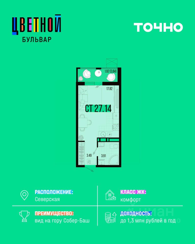 Жилой комплекс "Цветной бульвар" — это уютные дома высотой от 5 до 8 этажей, где каждый найдет квартиру своей мечты: от стильных студий до роскошных двухуровневых квартир с потрясающим видом на гору Собер-Баш! Представьте себе жизнь среди живописной природы, наслаждаясь прогулками по широкому зеленому бульвару длиной 460 метров, окруженному красивыми зелеными насаждениями и зонами для занятий спортом и отдыха всей семьей. Для детей современный детский сад и школа, где специально созданный музей и уникальная STEAM-лаборатория откроют перед ними удивительный мир науки и творчества!