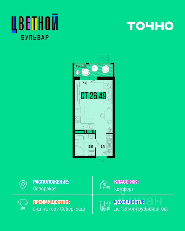 Жилой комплекс "Цветной бульвар" — это уютные дома высотой от 5 до 8 этажей, где каждый найдет квартиру своей мечты: от стильных студий до роскошных двухуровневых квартир с потрясающим видом на гору Собер-Баш! Представьте себе жизнь среди живописной природы, наслаждаясь прогулками по широкому зеленому бульвару длиной 460 метров, окруженному красивыми зелеными насаждениями и зонами для занятий спортом и отдыха всей семьей. Для детей современный детский сад и школа, где специально созданный музей и уникальная STEAM-лаборатория откроют перед ними удивительный мир науки и творчества!