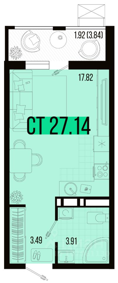 Общая площадь27,14 м²