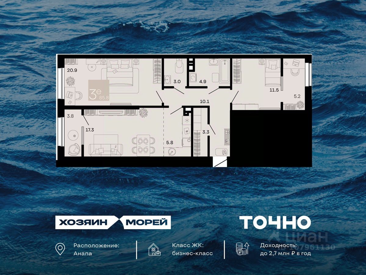 Откройте для себя мир комфорта и роскоши в жилом комплексе бизнес-класса "Хозяин морей". 9 домов от 8 до 12 этажей окружены благоустроенной территорией с прогулочными дорожками, бассейнами, детскими площадками, пространством для спорта и отдыха, двумя садиками и просторной школой. Здесь представлены разнообразные планировки: от комфортабельных студий площадью 33 кв.м до просторных семейных квартир с уникальными видами на бескрайнее море — идеальная комбинация уюта и статуса!