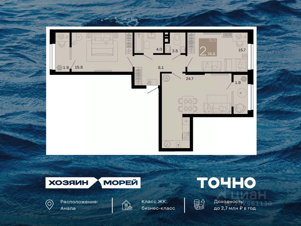 Откройте для себя мир комфорта и роскоши в жилом комплексе бизнес-класса "Хозяин морей". 9 домов от 8 до 12 этажей окружены благоустроенной территорией с прогулочными дорожками, бассейнами, детскими площадками, пространством для спорта и отдыха, двумя садиками и просторной школой. Здесь представлены разнообразные планировки: от комфортабельных студий площадью 33 кв.м до просторных семейных квартир с уникальными видами на бескрайнее море — идеальная комбинация уюта и статуса!