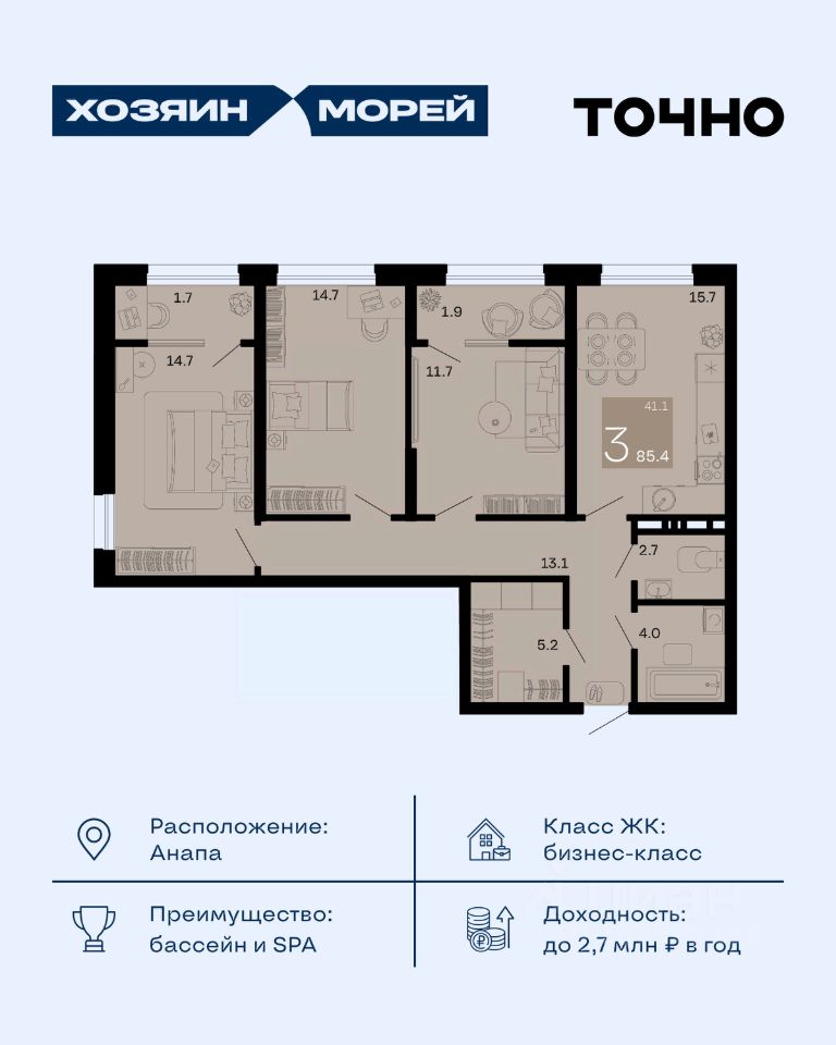 Откройте для себя мир комфорта и роскоши в жилом комплексе бизнес-класса "Хозяин морей". 9 домов от 8 до 12 этажей окружены благоустроенной территорией с прогулочными дорожками, бассейнами, детскими площадками, пространством для спорта и отдыха, двумя садиками и просторной школой. Здесь представлены разнообразные планировки: от комфортабельных студий площадью 33 кв.м до просторных семейных квартир с уникальными видами на бескрайнее море — идеальная комбинация уюта и статуса!