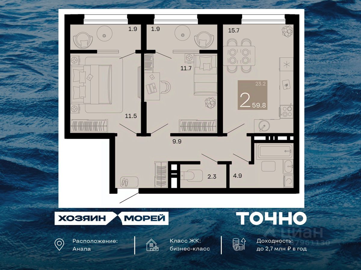 Откройте для себя мир комфорта и роскоши в жилом комплексе бизнес-класса "Хозяин морей". 9 домов от 8 до 12 этажей окружены благоустроенной территорией с прогулочными дорожками, бассейнами, детскими площадками, пространством для спорта и отдыха, двумя садиками и просторной школой. Здесь представлены разнообразные планировки: от комфортабельных студий площадью 33 кв.м до просторных семейных квартир с уникальными видами на бескрайнее море — идеальная комбинация уюта и статуса!