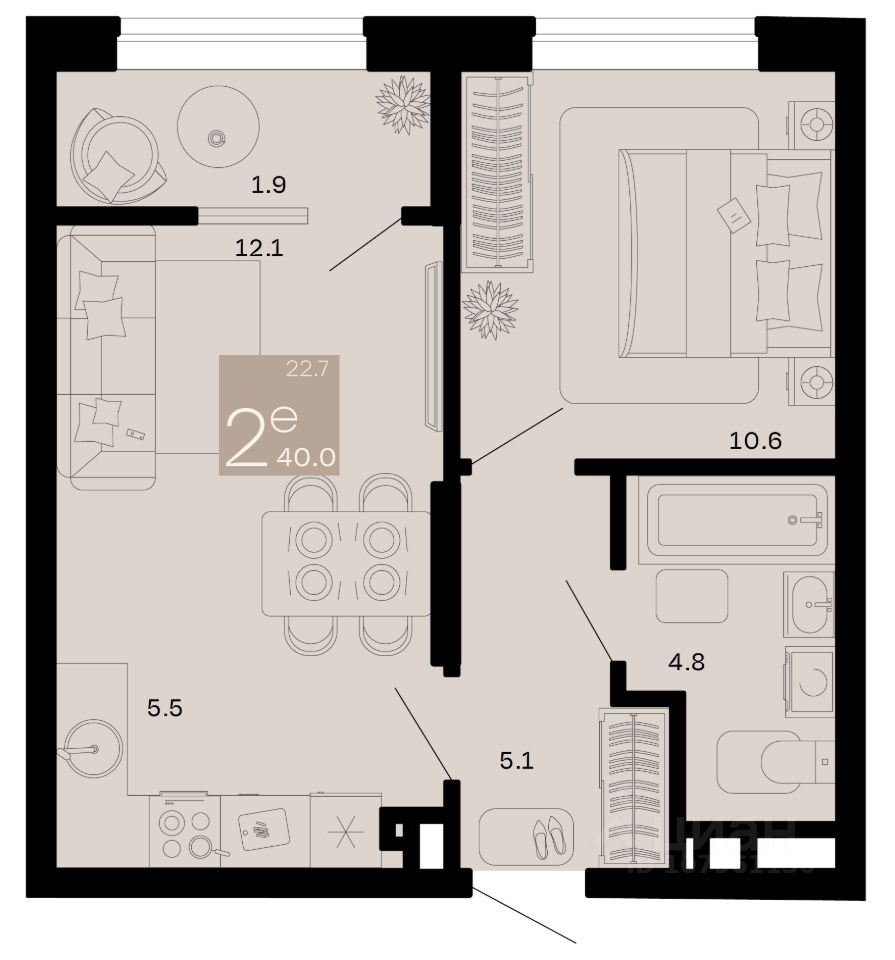 Общая площадь40 м²