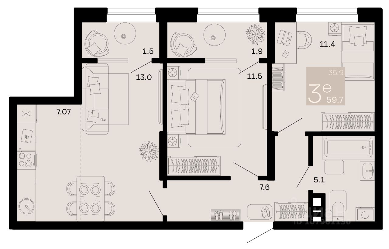 Общая площадь59,7 м²