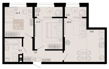 Общая площадь59,7 м²