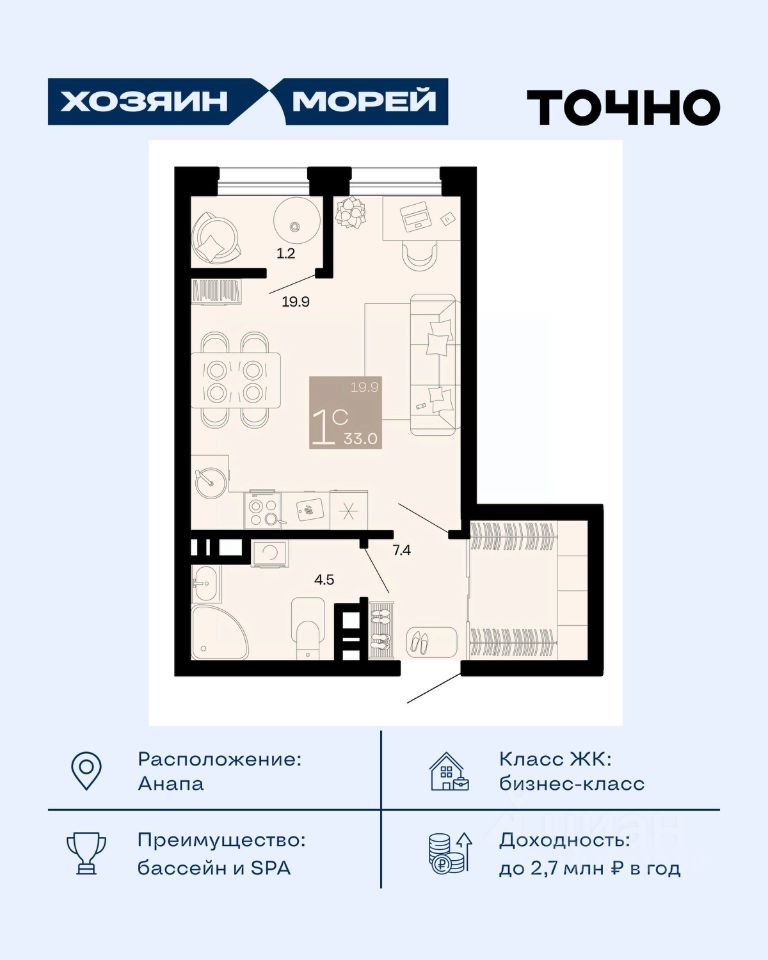 Откройте для себя мир комфорта и роскоши в жилом комплексе бизнес-класса "Хозяин морей". 9 домов от 8 до 12 этажей окружены благоустроенной территорией с прогулочными дорожками, бассейнами, детскими площадками, пространством для спорта и отдыха, двумя садиками и просторной школой. Здесь представлены разнообразные планировки: от комфортабельных студий площадью 33 кв.м до просторных семейных квартир с уникальными видами на бескрайнее море — идеальная комбинация уюта и статуса!