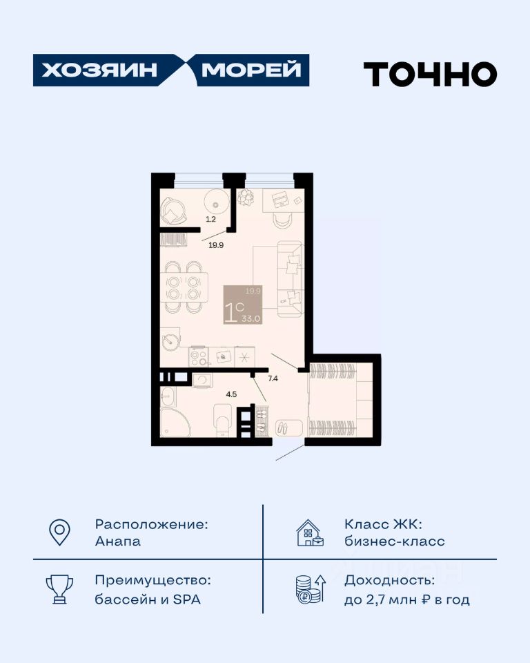 Откройте для себя мир комфорта и роскоши в жилом комплексе бизнес-класса "Хозяин морей". 9 домов от 8 до 12 этажей окружены благоустроенной территорией с прогулочными дорожками, бассейнами, детскими площадками, пространством для спорта и отдыха, двумя садиками и просторной школой. Здесь представлены разнообразные планировки: от комфортабельных студий площадью 33 кв.м до просторных семейных квартир с уникальными видами на бескрайнее море — идеальная комбинация уюта и статуса!