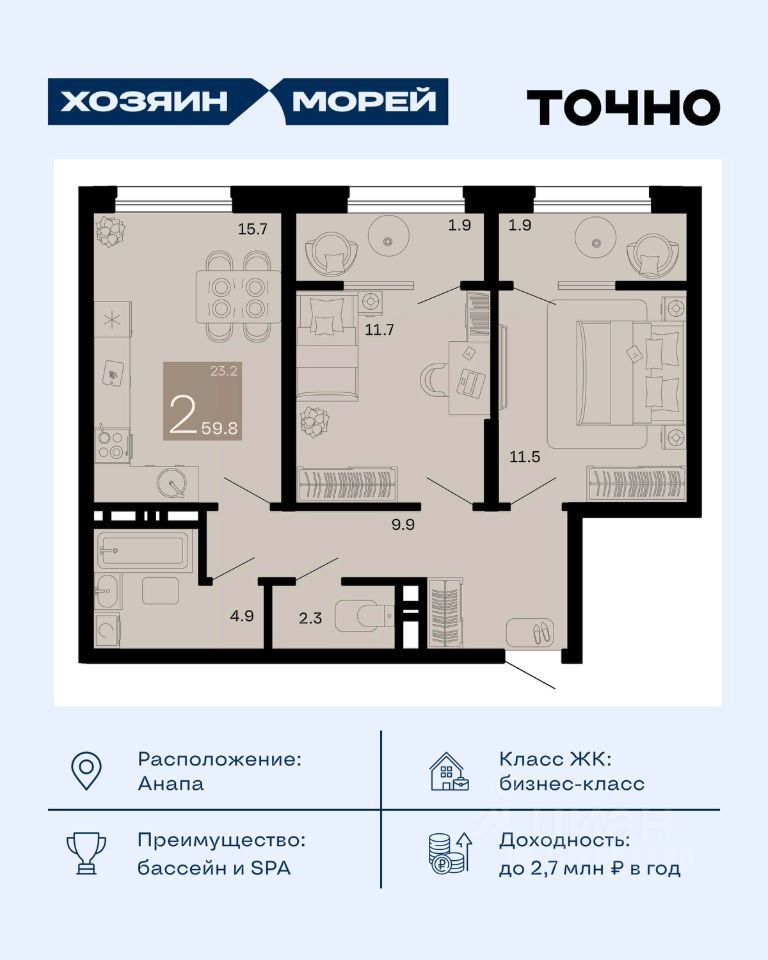Откройте для себя мир комфорта и роскоши в жилом комплексе бизнес-класса "Хозяин морей". 9 домов от 8 до 12 этажей окружены благоустроенной территорией с прогулочными дорожками, бассейнами, детскими площадками, пространством для спорта и отдыха, двумя садиками и просторной школой. Здесь представлены разнообразные планировки: от комфортабельных студий площадью 33 кв.м до просторных семейных квартир с уникальными видами на бескрайнее море — идеальная комбинация уюта и статуса!