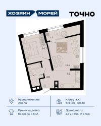 Откройте для себя мир комфорта и роскоши в жилом комплексе бизнес-класса "Хозяин морей". 9 домов от 8 до 12 этажей окружены благоустроенной территорией с прогулочными дорожками, бассейнами, детскими площадками, пространством для спорта и отдыха, двумя садиками и просторной школой. Здесь представлены разнообразные планировки: от комфортабельных студий площадью 33 кв.м до просторных семейных квартир с уникальными видами на бескрайнее море — идеальная комбинация уюта и статуса!
