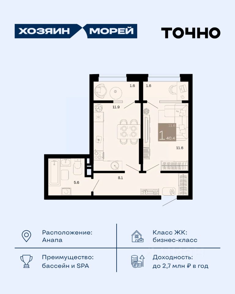 Откройте для себя мир комфорта и роскоши в жилом комплексе бизнес-класса "Хозяин морей". 9 домов от 8 до 12 этажей окружены благоустроенной территорией с прогулочными дорожками, бассейнами, детскими площадками, пространством для спорта и отдыха, двумя садиками и просторной школой. Здесь представлены разнообразные планировки: от комфортабельных студий площадью 33 кв.м до просторных семейных квартир с уникальными видами на бескрайнее море — идеальная комбинация уюта и статуса!