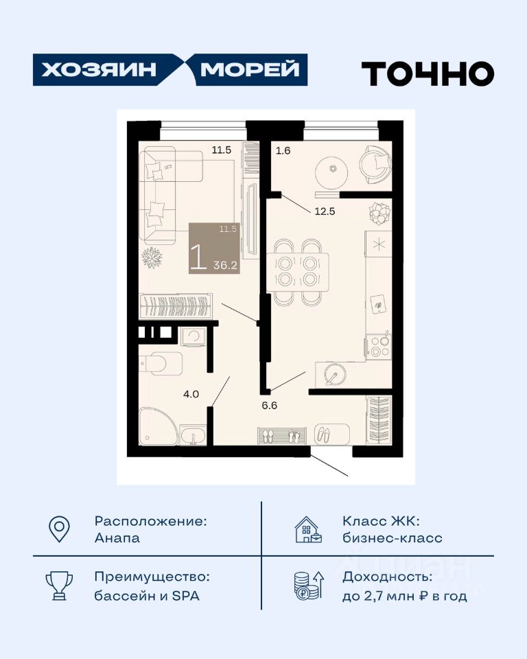 Откройте для себя мир комфорта и роскоши в жилом комплексе бизнес-класса "Хозяин морей". 9 домов от 8 до 12 этажей окружены благоустроенной территорией с прогулочными дорожками, бассейнами, детскими площадками, пространством для спорта и отдыха, двумя садиками и просторной школой. Здесь представлены разнообразные планировки: от комфортабельных студий площадью 33 кв.м до просторных семейных квартир с уникальными видами на бескрайнее море — идеальная комбинация уюта и статуса!