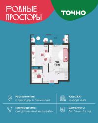 "Родные просторы"- самодостаточный микрорайон, который реализован по принципу комплексного развития территории, где есть вся инфраструктура для комфортной жизни. На территории 41 га 29 домов от 9 до 24 этажей, уютные дворы со спортивными и игровыми площадками, социальные и коммерческие объекты, зеленые массивы и фонтаны. Главная точка притяжения "Родных просторов" - парк семейного отдыха площадью 9 га, 4,5 км прогулочных аллей, амфитеатр для мероприятий, кинофестивальная площадка. Особая гордость микрорайона современная школа на 1550 мест и 3 детских сада "Ладушки", "Веснушки" и "Топотушки" на 880 малышей. В центре микрорайона строятся фитнес-клуб BALANCE с акватермальным комплексом и собственная поликлиника, площадью более 5000 кв.м. Уже открыт православный храм Святых Первоверховных апостолов Петра и Павла.